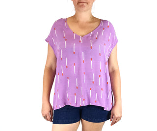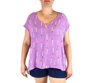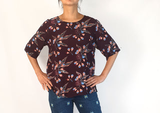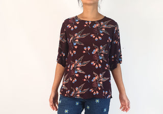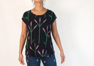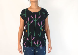 Leonard St black top with purple flower and bee print size 10 (note: some wash wear)