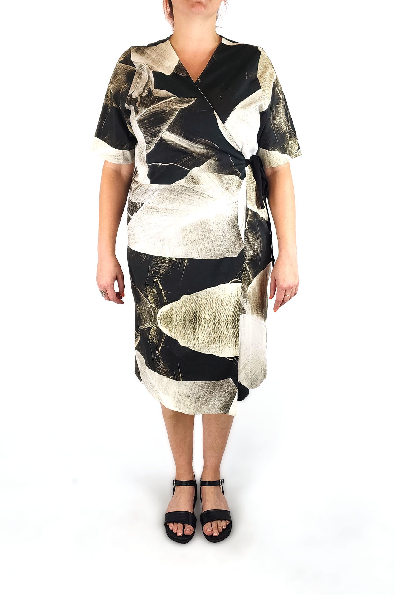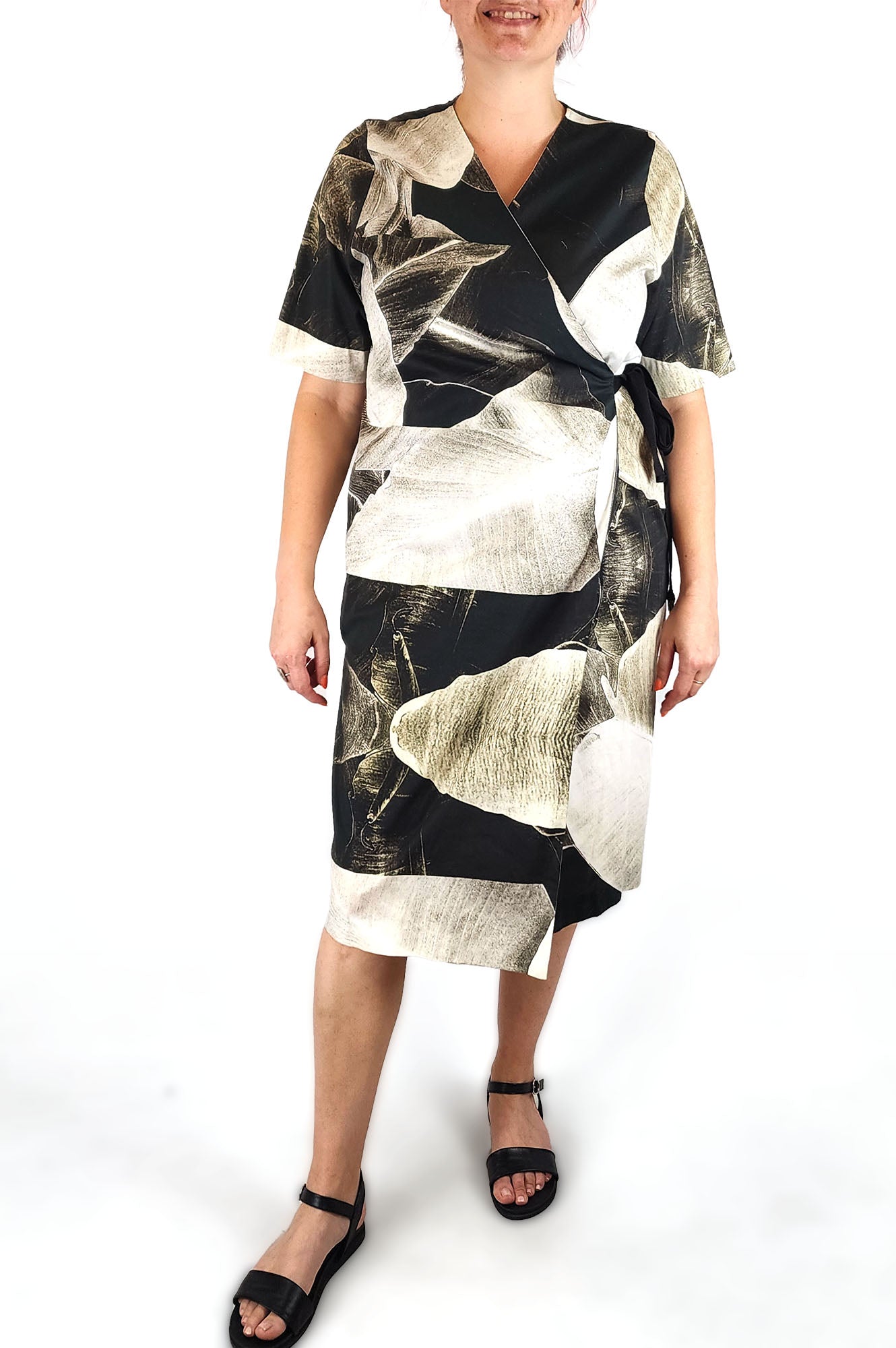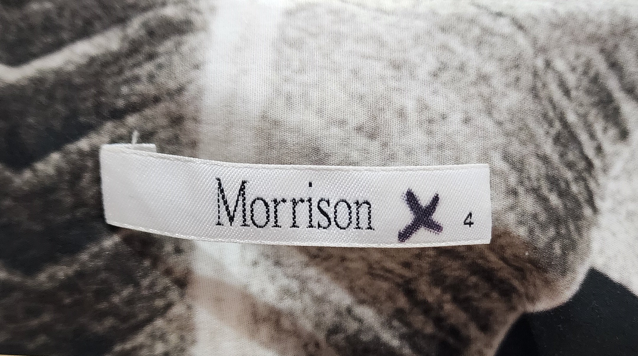 Gorgeous second hand dress by Australian designer, Morrison! Featuring a beautiful and unique black and white abstract print, flattering wrap style with half-length sleeves offers an adjustable fit, this cutie is perfect for work or play across most seasons!
