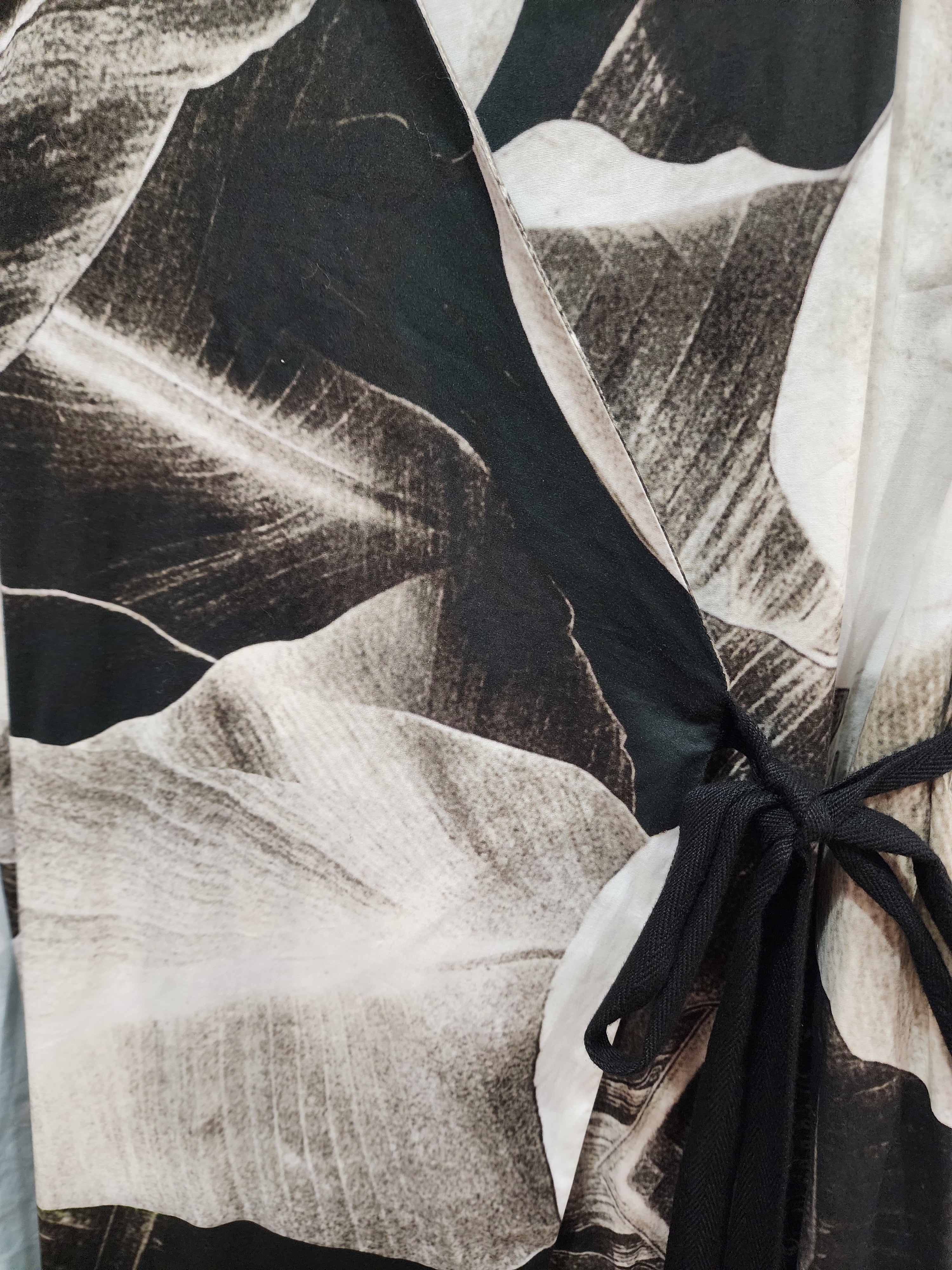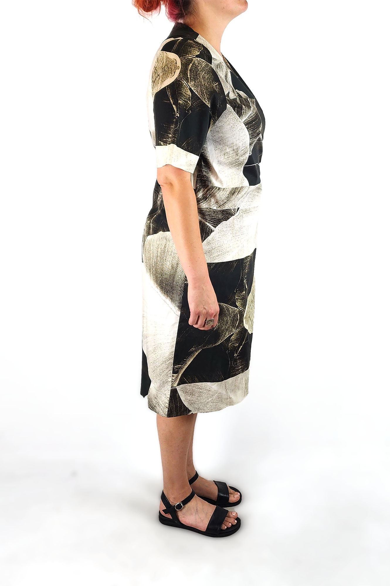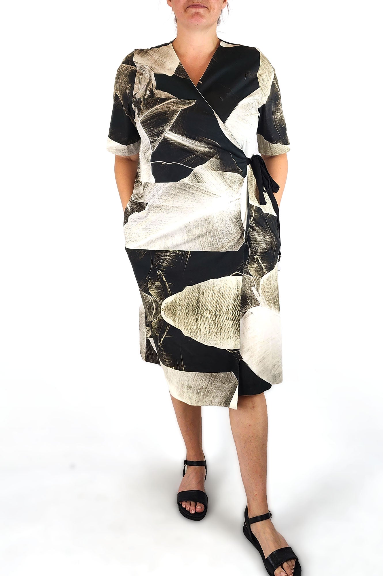 Gorgeous second hand dress by Australian designer, Morrison! Featuring a beautiful and unique black and white abstract print, flattering wrap style with half-length sleeves offers an adjustable fit, this cutie is perfect for work or play across most seasons!