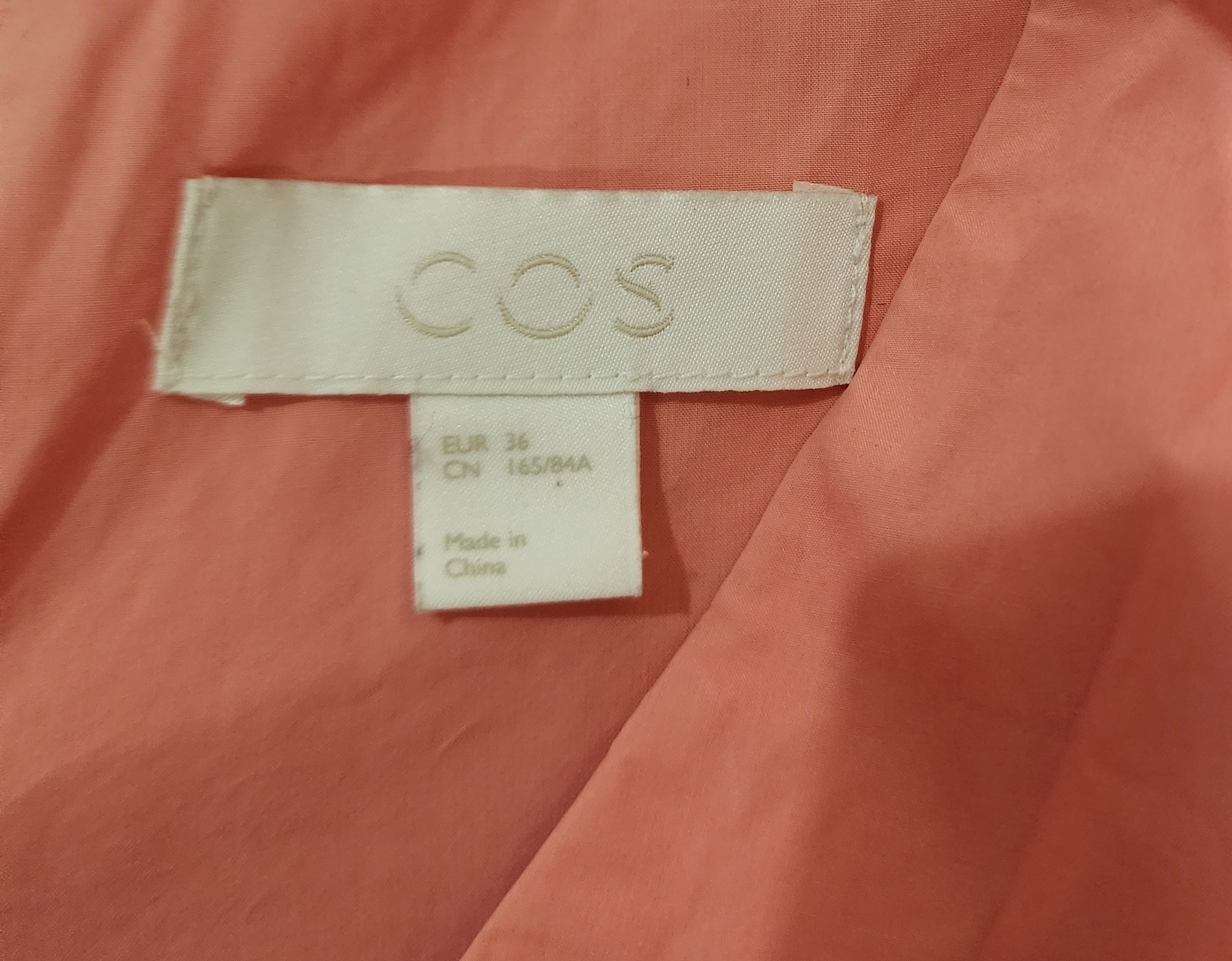 This second-hand dress by designer COS features a gorgeous shade of pink and a floaty, whimsical style. With a flattering wrap-style bust and v-neck on both the front and back, plus pockets, this beautiful piece is perfect for work or play across spring, summer, and early autumn!
