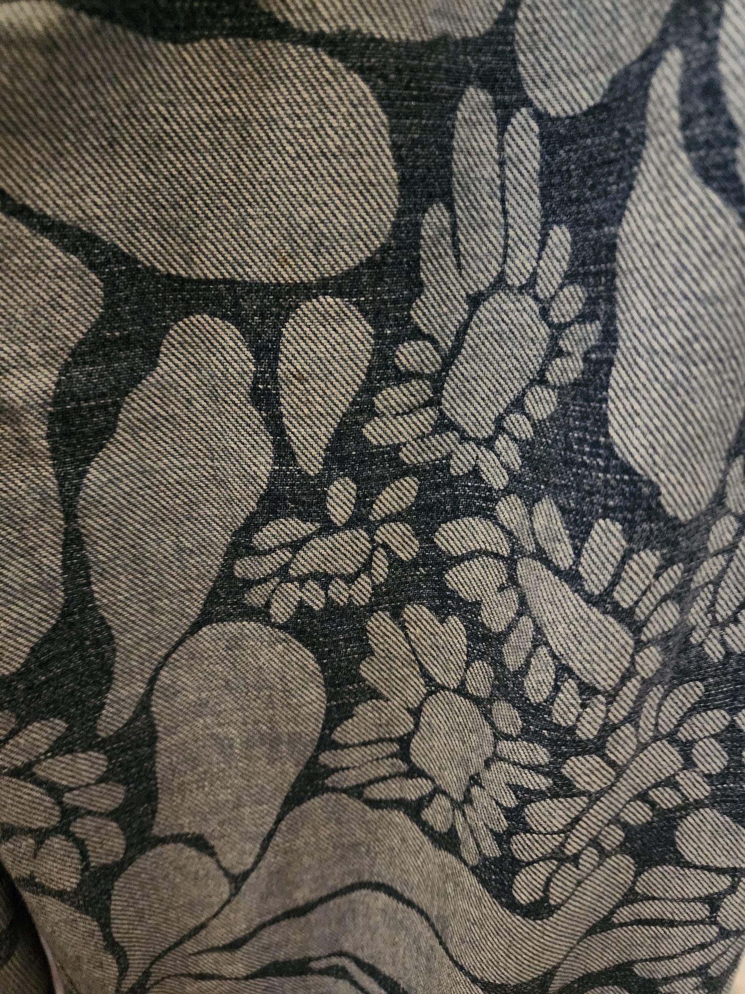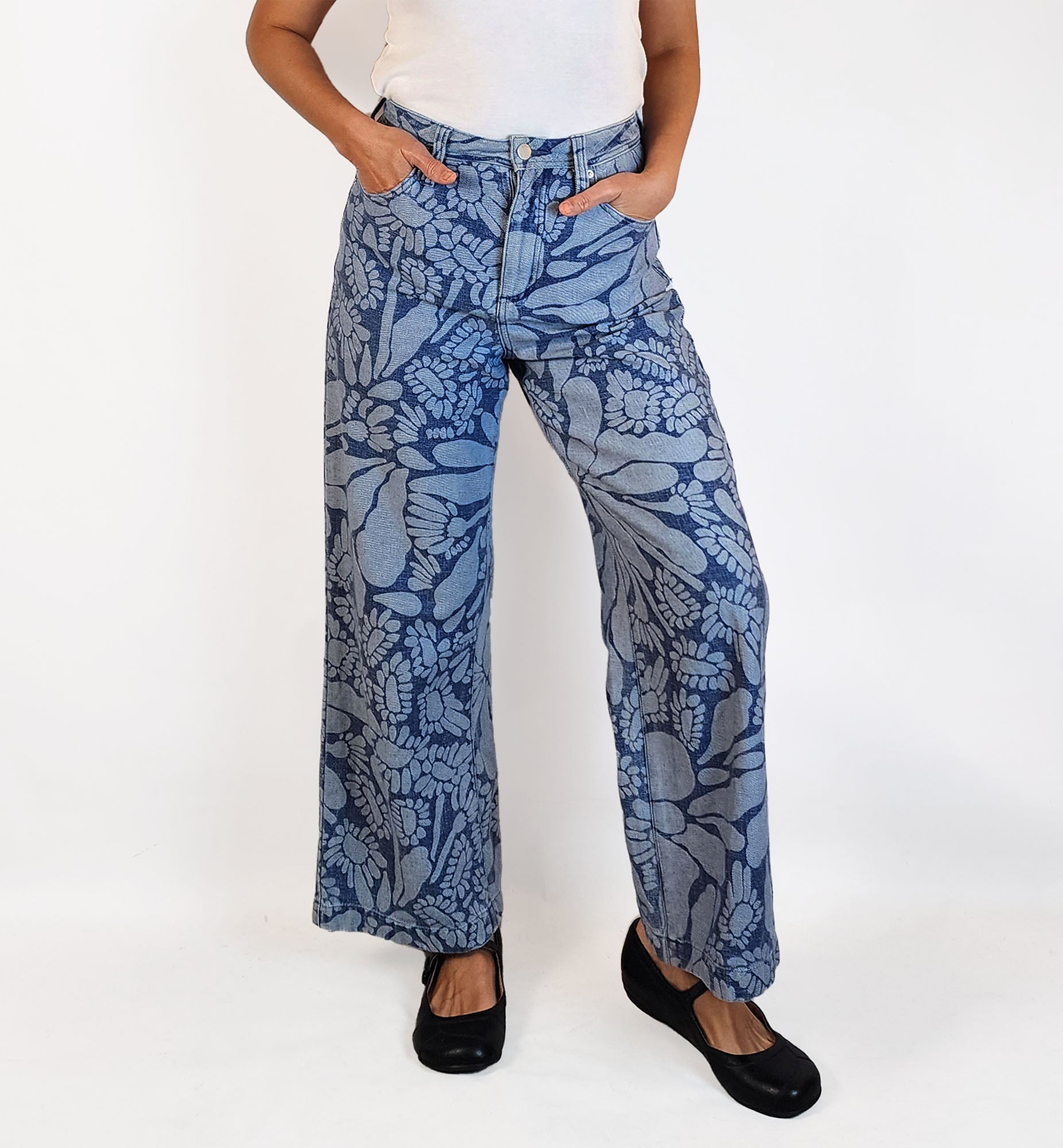 These fabulous second-hand jeans by Australian designer Gorman feature a fun and funky floral denim print throughout! With wide legs and a flattering fit, these cuties are perfect for all seasons. The unique print adds a playful touch to your outfit. Comfortable and stylish, they are a great addition to any casual wardrobe!
