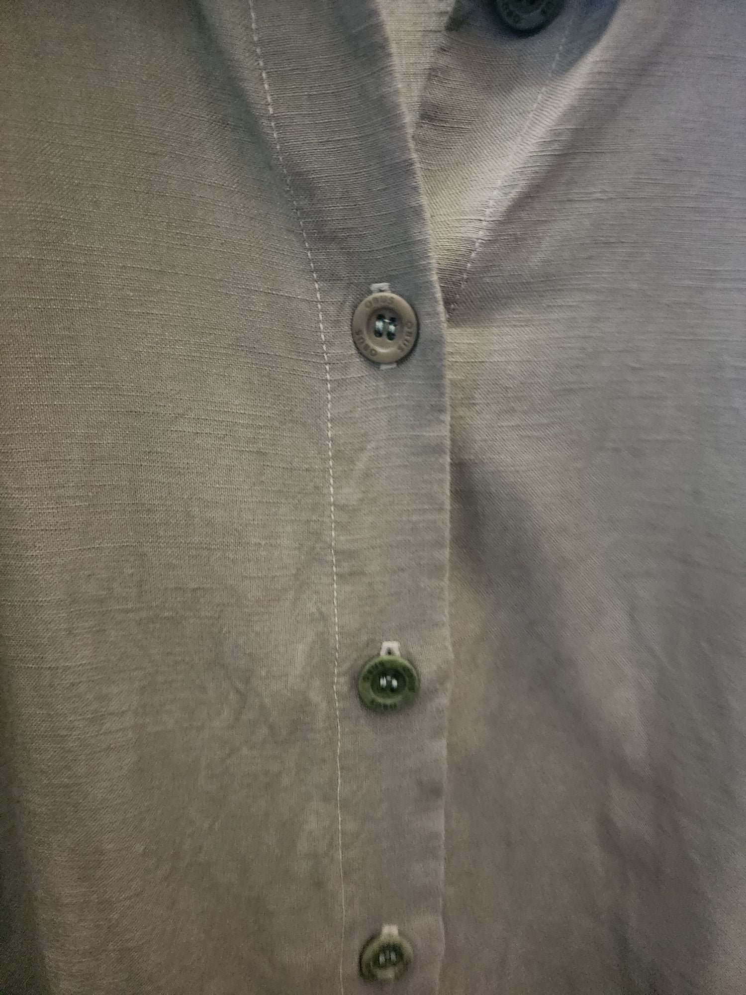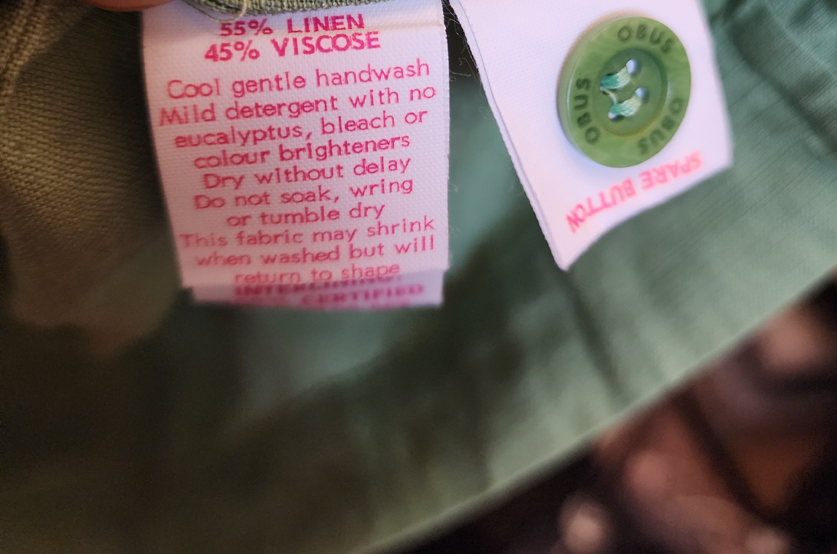 This cute top by Australian designer Obus features a gorgeous shade of green with three quarter length sleeves, full buttons, and a charming collar. Perfect for work or play, this lovely shirt suits spring, summer, and autumn wear. The breathable linen and viscose blend makes it comfortable and stylish for various occasions. A delightful second-hand piece that adds a fresh pop of color to your collection!