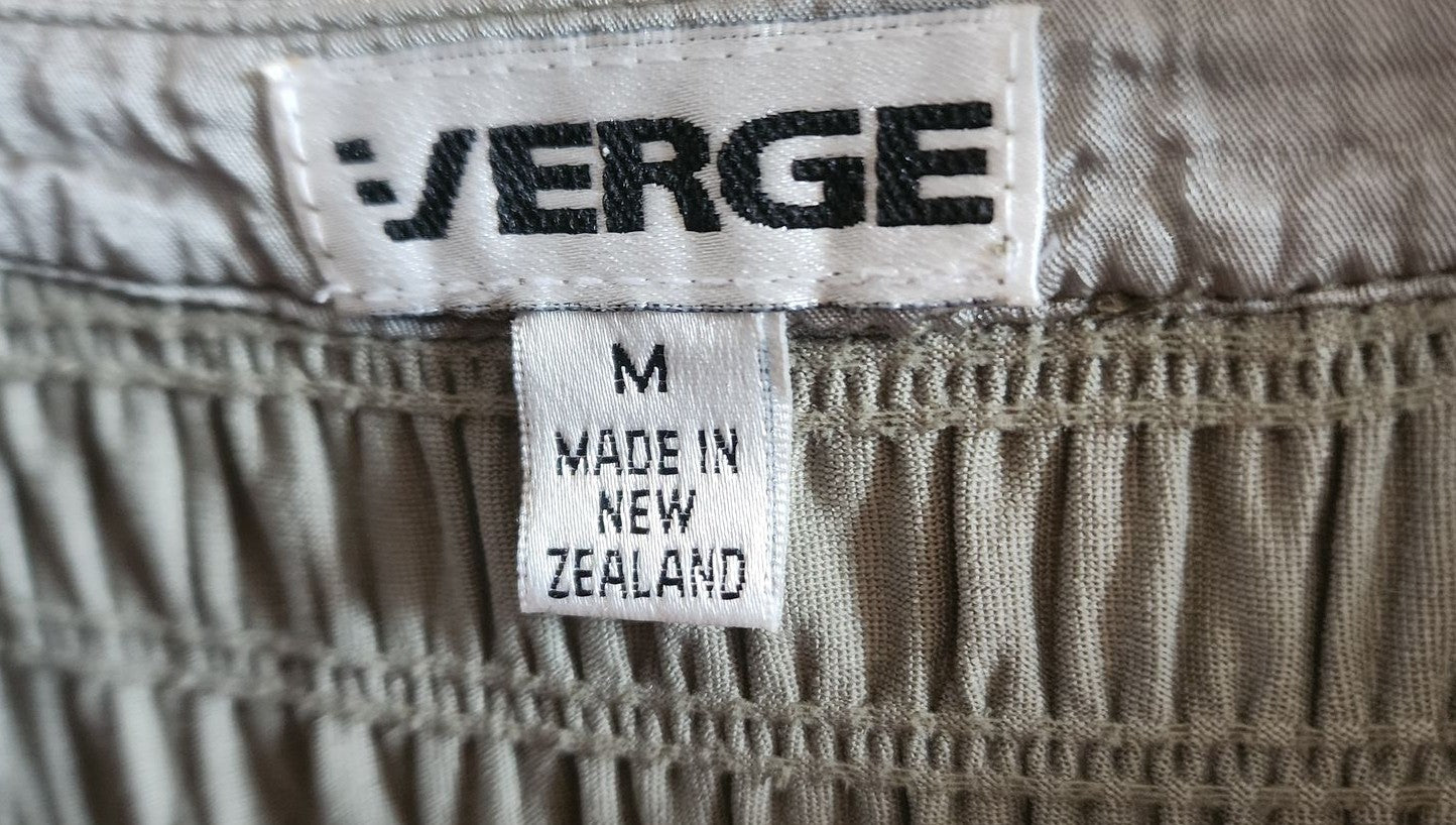 This gorgeous top by New Zealand designer Verge features a neutral olive green colour with classic shirring and beautiful trim at the neck, sleeves, and bottom hem. This lovely piece is perfect for spring and autumn as well as winter. Wear it to work or play alike and add a little bit of noughties charm into your collection of second-hand clothes! The comfortable fabric blend ensures a great fit and feel.