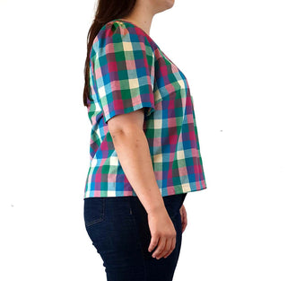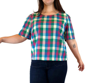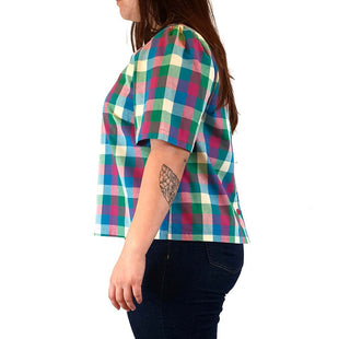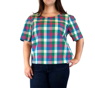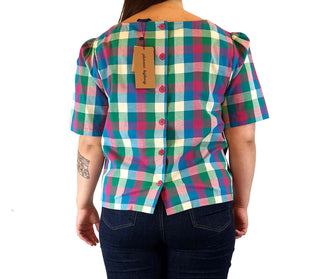 This cutie features a stunning check print, half length sleeves and fabulous pink buttons down the back! Wear with skirts, pants and jeans alike, and layer with cardigans and jackets!