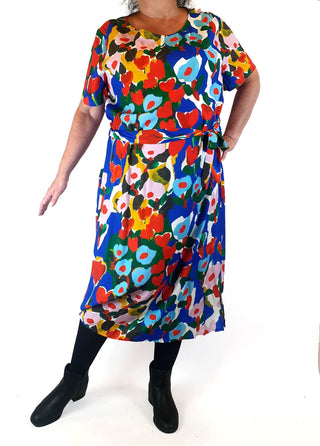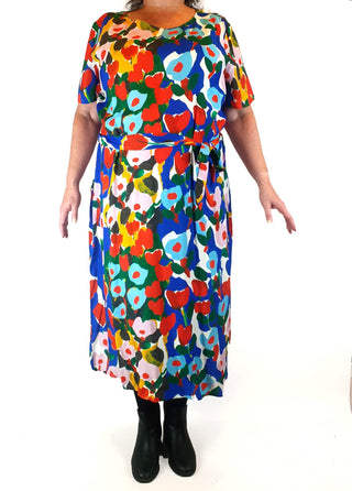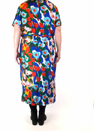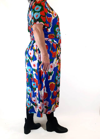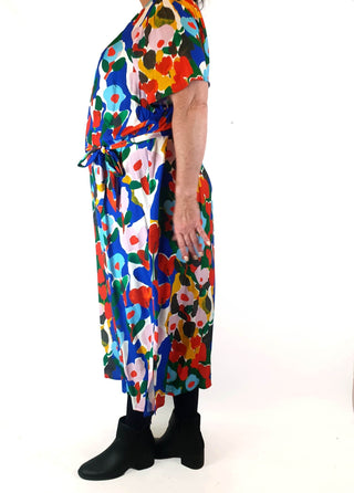 What a beautiful piece! Featuring a classic vibrant Variety Hour print, tee shirt length sleeves, maxi length and an optional waist tie, this cutie is fun and practical together! Wear to work, play or dress up to an event!